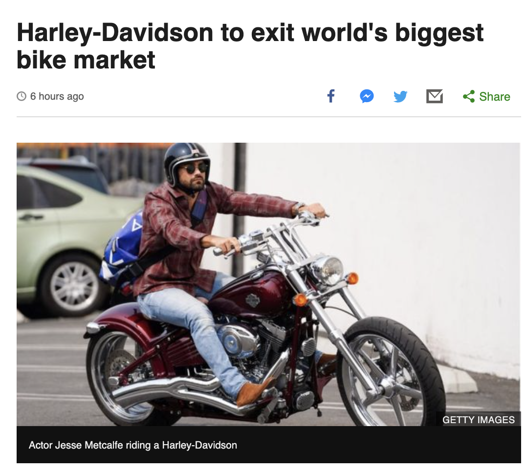 根据SEC提交的文件,哈雷戴维森(Harley-Davidson)终止了在印度的业务,将退出印度市场,并停止在印度当地的生产。该公司2009年进入印度市场,但销售增长一直乏力。在这个人口超过13亿的国家,哈雷摩托去年的销量还不到2500辆。