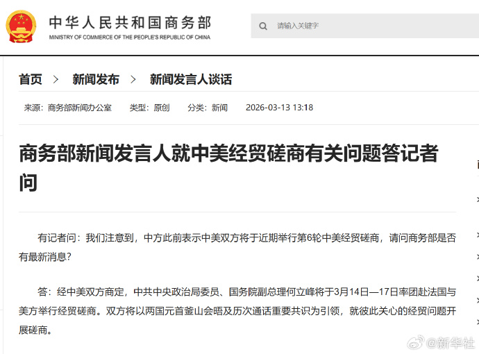 答:经中美双方商定,中共中央政治局委员、国务院副总理何立峰将于3月14日—17日率团赴法国与美方举行经贸磋商。双方将以两国元首釜山会晤及历次通话重要共识为引领,就彼此关心的经贸问题开展磋商。