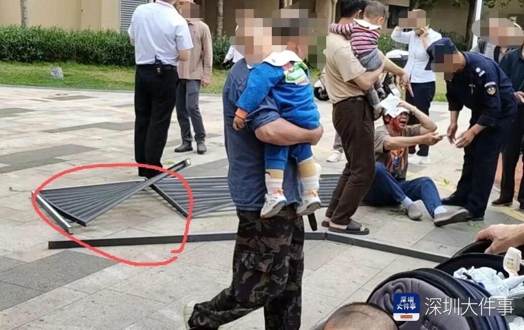 4月1日,有网友发帖称,宝安区的汇裕名都花园三期昨日发生一起高空坠物事件:因百叶窗脱落,导致一名大妈被砸中;事发后,物业已启动专项安全排查。另据记者获悉,老人经诊治已回家休养。网友发布的照片显示,现场一块长约2米的黑色金属百叶窗坠地后框架变形、叶片散落。一名老年人坐在地上,头部有明显血迹,神情痛苦,身旁有安保人员上前救助,现场聚集了不少业主。记者注意到,帖子留言中,有网友还原了部分细节:“老太太还活着,真的捡回来一条命了,太恐怖了”“人家奶奶还推着她家小婴儿的,幸好宝宝没事”。