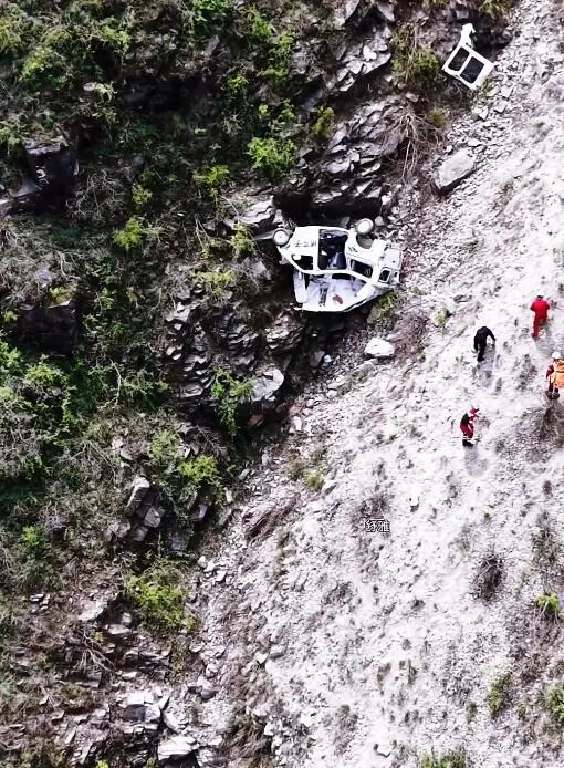 4月3日中午,现场航拍视频显示,这辆小车位于悬崖下方的山沟,车体扭曲变形严重,车顶已经开口,车门也有脱落。多名救援人员已顺着山崖攀爬到事故车辆附近,尝试进行救援。