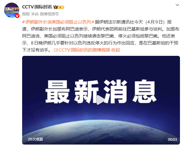 加里布阿巴迪说,美国必须阻止以色列继续袭击黎巴嫩,停火必须包括黎巴嫩。他还表示,8日晚伊朗几乎要针对以色列违反停火的行为作出回应,是在巴基斯坦的干预下才没有动手。