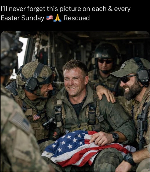 美国军官在伊朗“获救照”走红,假的,发布该图像的账户标注其为AI生成。