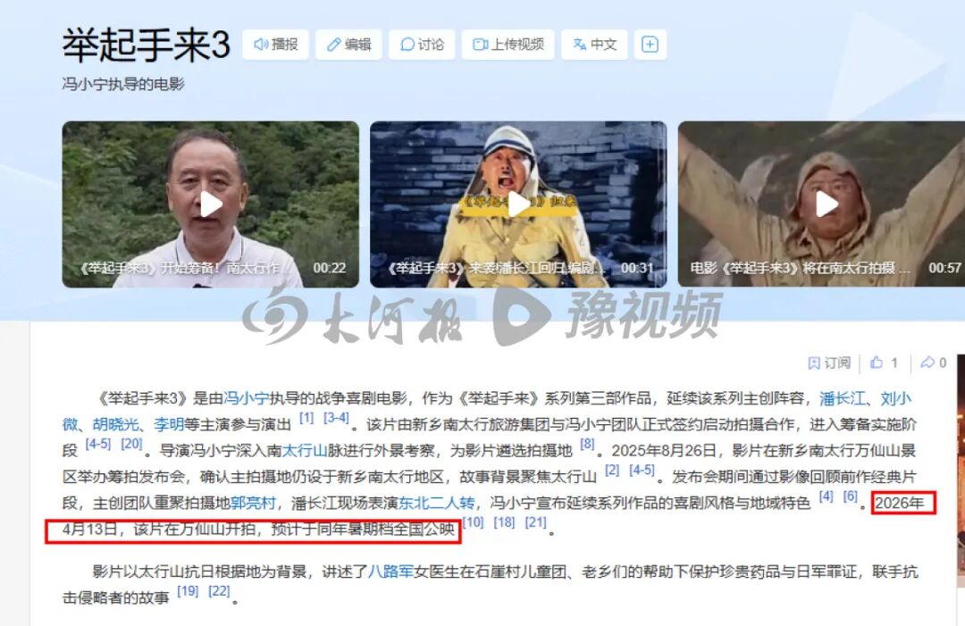 时隔16年,潘长江官宣《举起手来3》开拍,冯小宁继续执导,潘长江、刘仪伟等主演,预计于2026年暑期档全国公映。