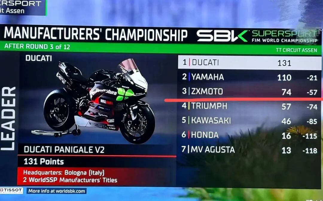 张雪机车总积分排名第三,仅落后于杜卡迪和雅马哈。