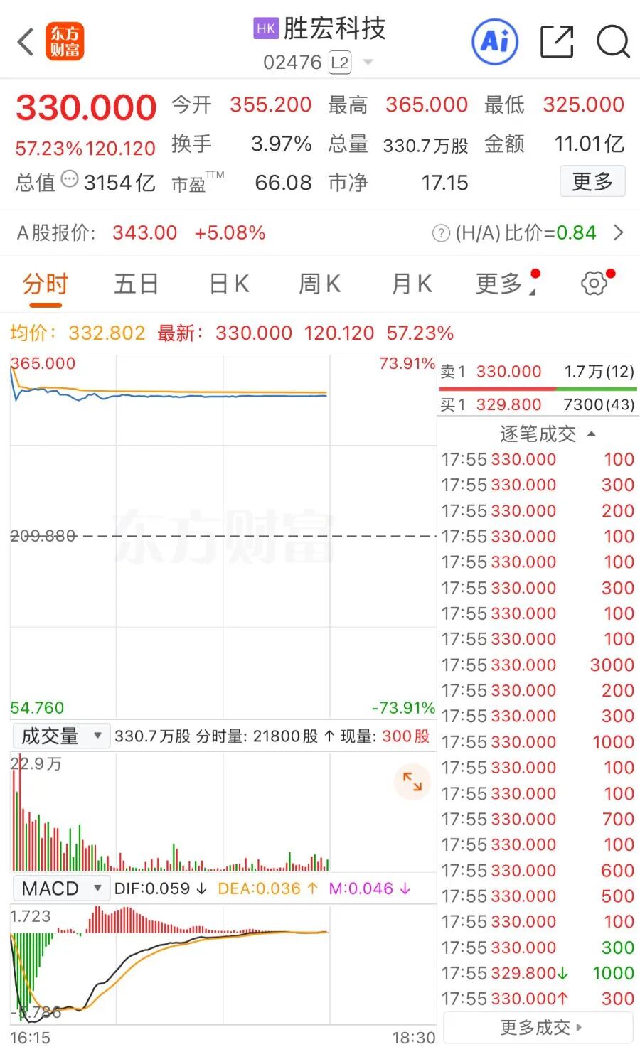 4月20日,PCB龙头胜宏科技(2476.HK)港股暗盘大涨,截至17:55,报330港元/股,涨57.23%。若按胜宏科技港股发行价209.88港元/股计算,每手100股,在不计手续费的情况下,每手账面浮盈超12000港元。