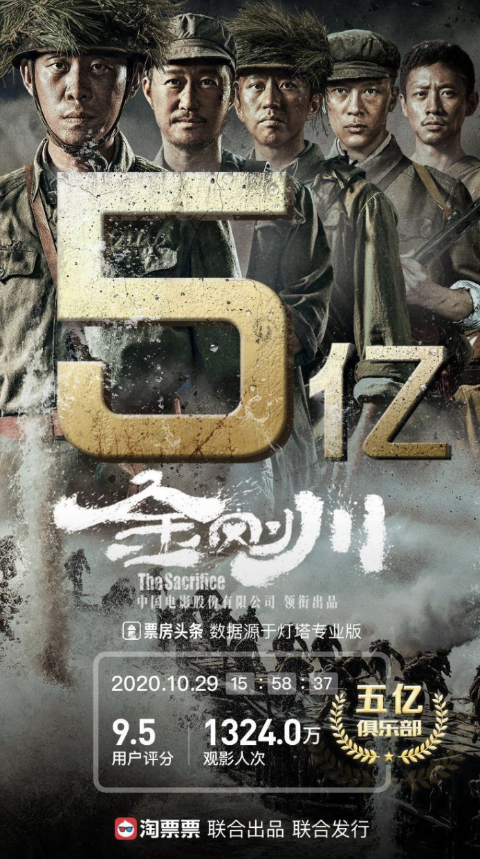 灯塔专业版数据显示,电影《金刚川》实时票房正式突破5亿大关,观影人次达1324万。