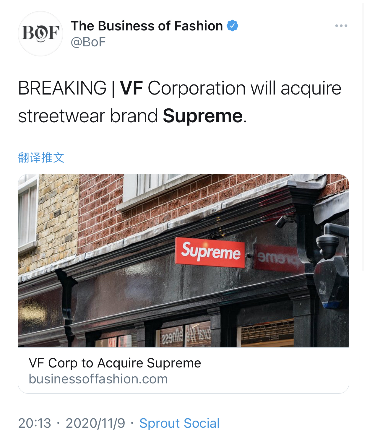 “北面”母公司VF集团宣布收购纽约街头品牌Supreme。