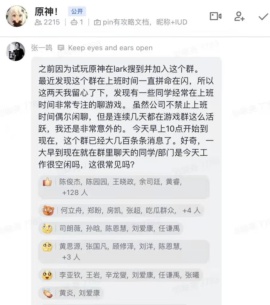 张一鸣批员工在上班时间聊原神游戏:这些同学工作很空闲吗?这很常见吗?