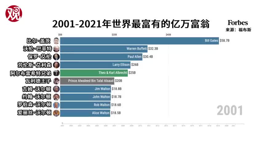 2001-2021年福布斯全球十大富豪排行。
