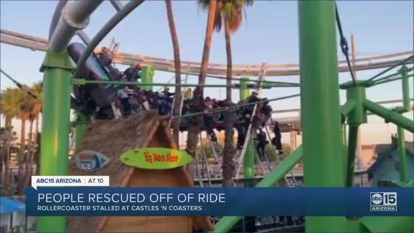 美国亚利桑那州一过山车故障,22名游客被困空中2小时。
