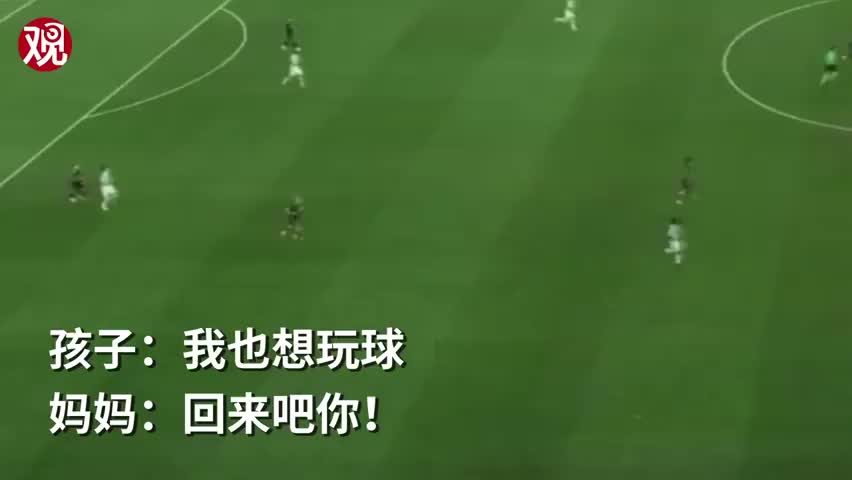 2岁小孩闯入足球赛场被妈妈滑铲拦截。