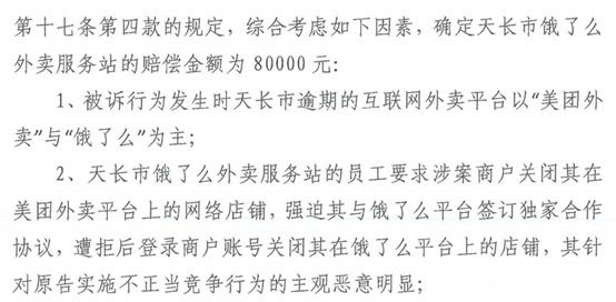 近日,安徽省滁州市中级人民法院就饿了么不正当竞争行为作出判决。法院认定,饿了么强迫商户“二选一”,遭拒后饿了么登录商户账号强制关闭其店铺,判定饿了么赔偿美团经济损失80000元。