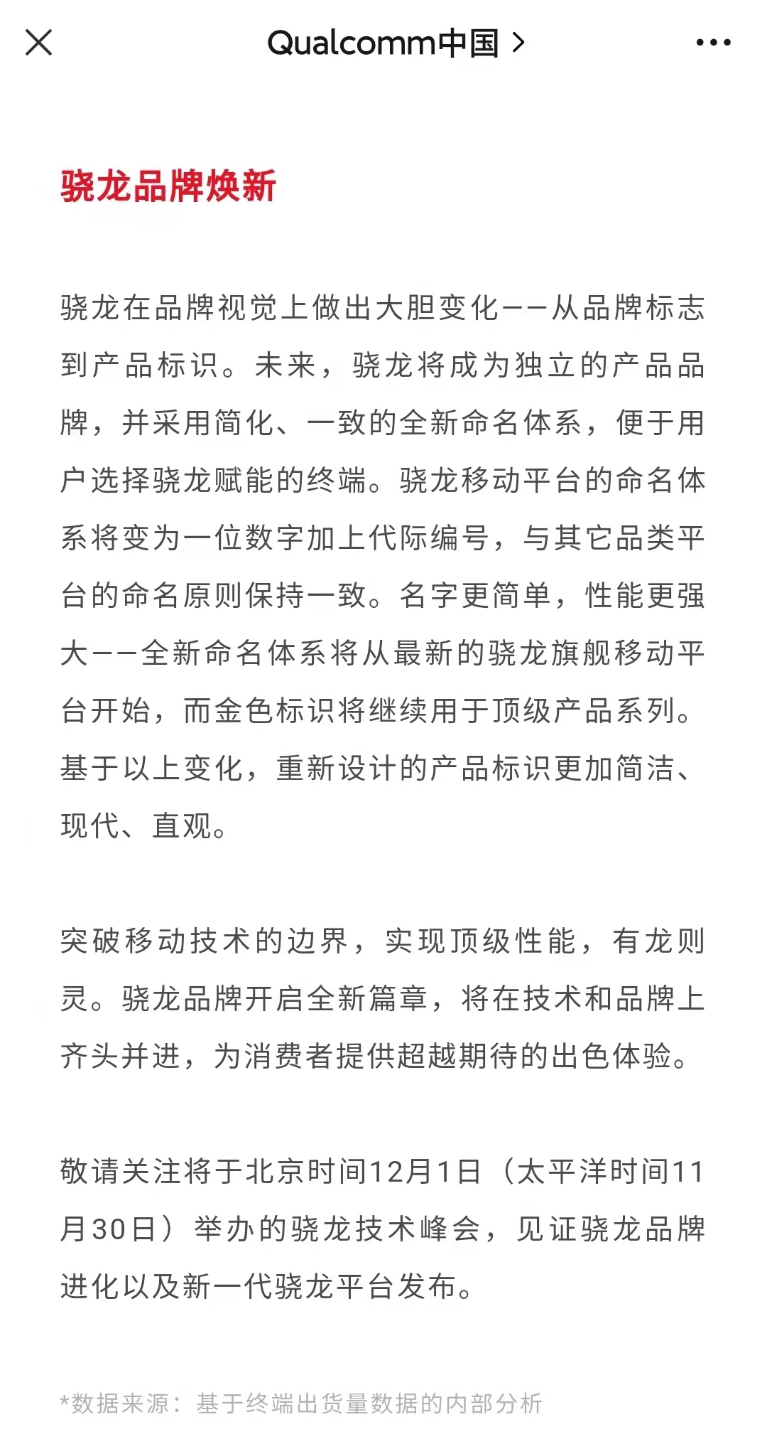 据“Qualcomm中国”微信公众号消息,高通宣布,骁龙将成为独立的产品品牌,并将改变品牌标志及产品标识。