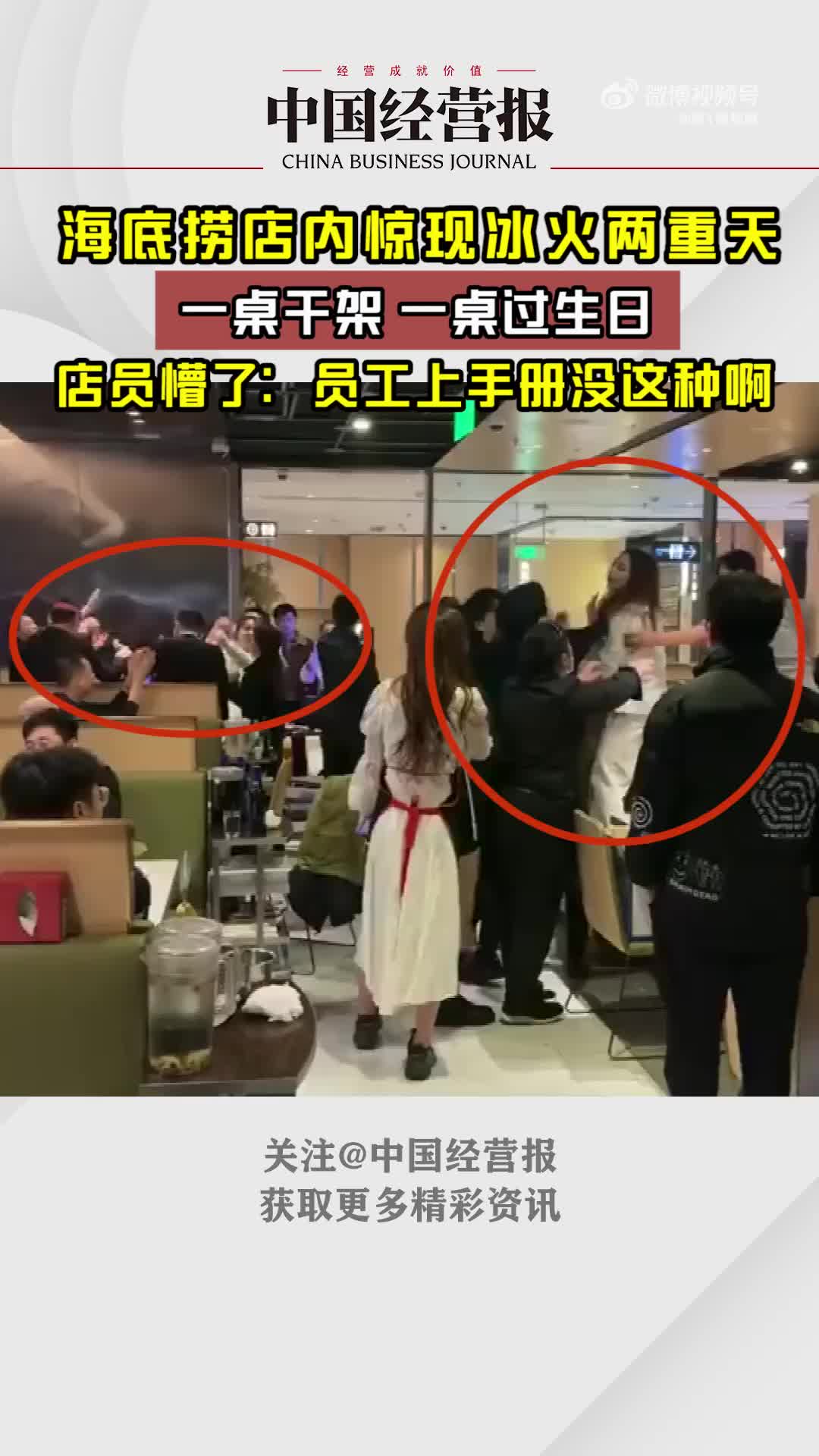 海底捞惊现冰火两重天:一桌过生日,一桌干架!近日,海底捞某店惊现冰火两重天的奇观:一桌人过生日,一桌人干架。工作人员站在一边无所适从,整个人都懵了!(via 中国经营报)如果你是海底捞的员工你会怎么做?