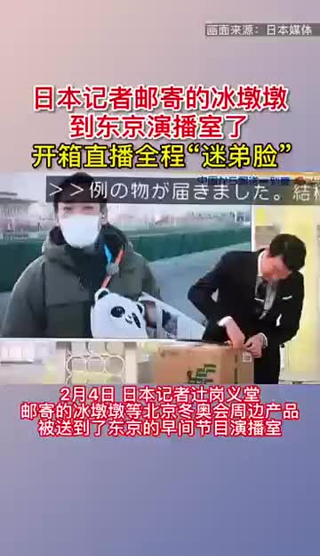 2月4日,日本记者辻岗义堂邮寄的冰墩墩等北京冬奥会周边产品被送到了东京的早间节目演播室。主持人现场直播开箱,在北京连线的记者义堂全程“迷弟脸”,拜托主持人一定要温柔小心。节目的最后,主持人决定将冰墩墩放在演播厅,一同观看北京冬奥会。(via 参考消息)