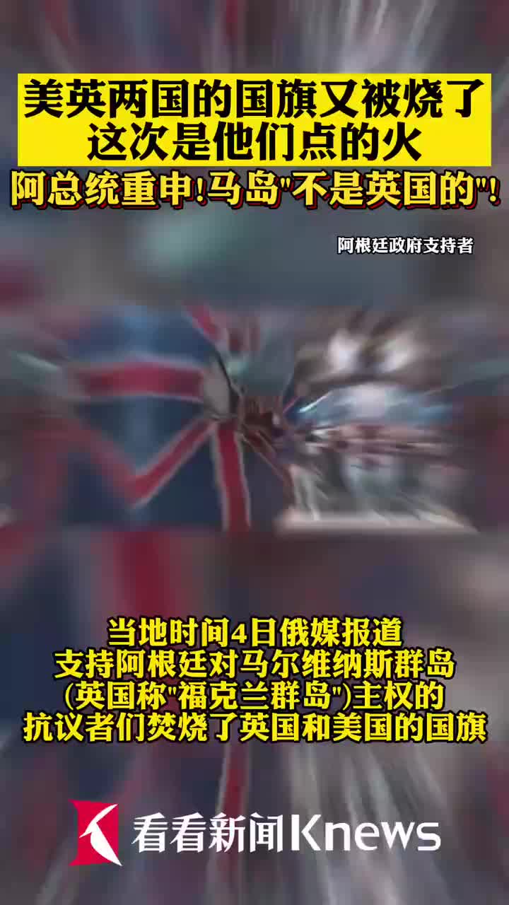 美英两国国旗又被烧了,阿总统重申马岛不是英国的。
