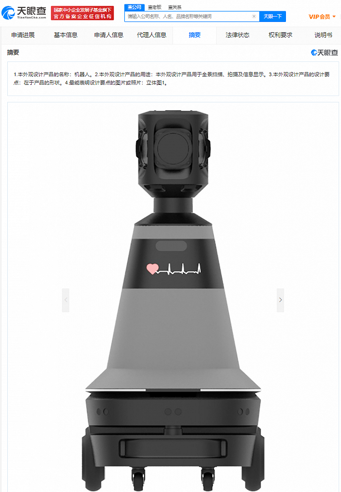 据天眼查App显示,近日,腾讯科技(深圳)有限公司申请的“机器人”外观专利获授权。摘要显示,本外观设计产品用于全景扫描、拍摄及信息显示,设计要点在于产品形状。