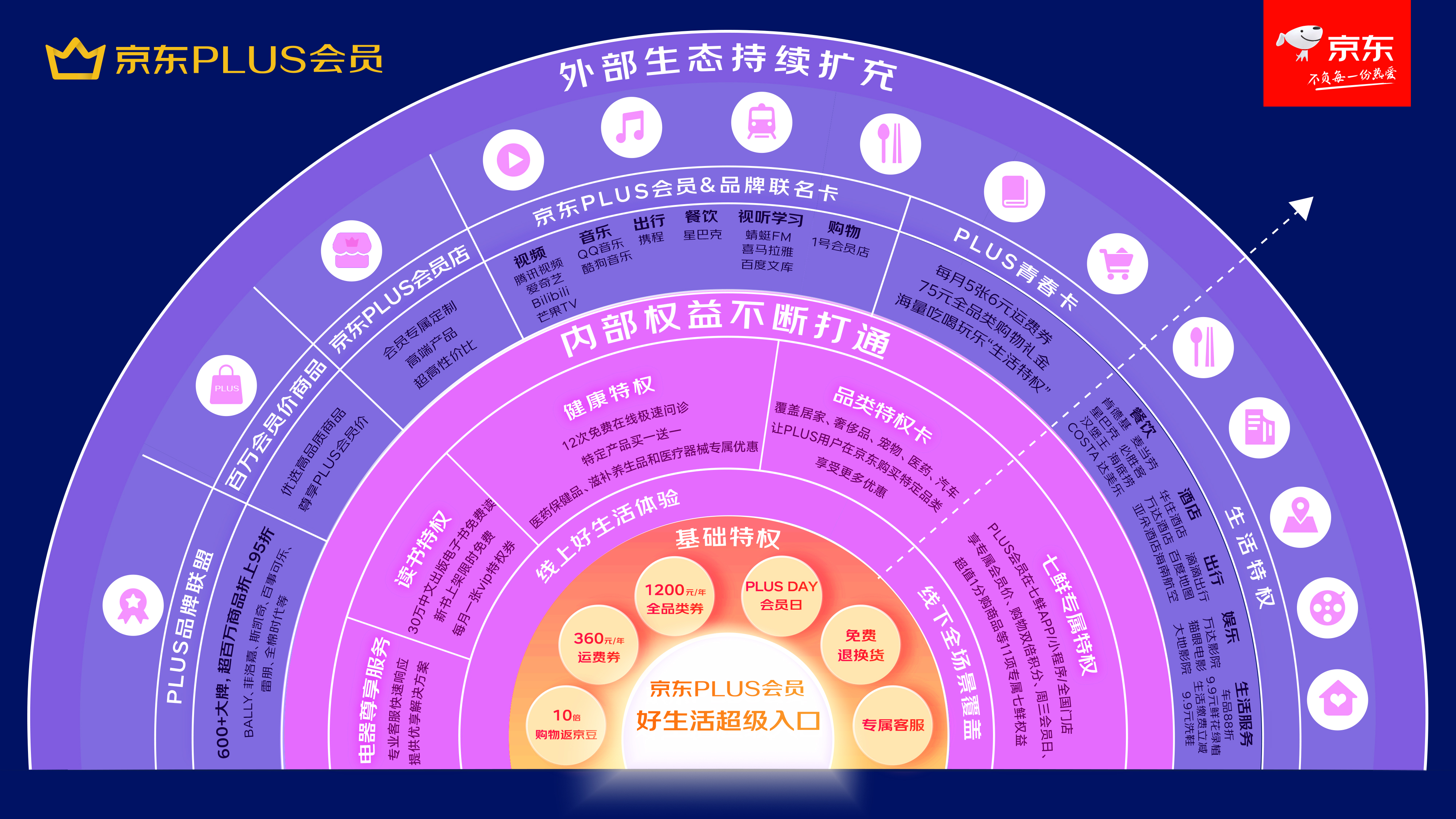 “作为中国电商领域首个付费会员体系,京东PLUS会员联合1200多家知名品牌,打造出覆盖线上、线下全场景的权益生态,成为消费者的‘好生活超级入口’”。京东集团副总裁、京东零售平台业务中心负责人林琛表示。