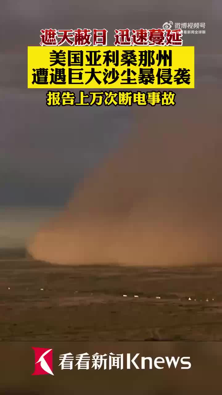 遮天蔽日!美国亚利桑那州遭巨大沙尘暴侵袭,报告上万次断电事故。