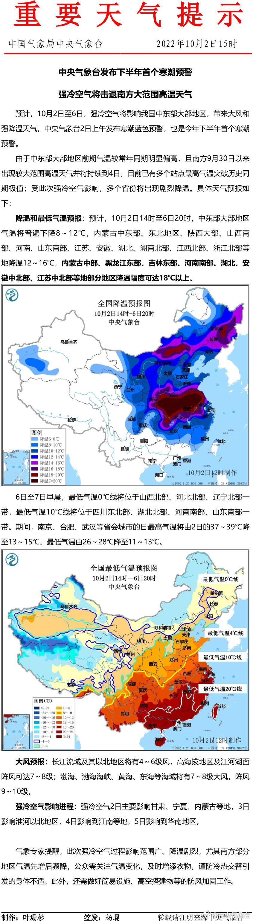 中央气象台发布下半年首个寒潮预警,强冷空气将击退南方大范围高温天气。