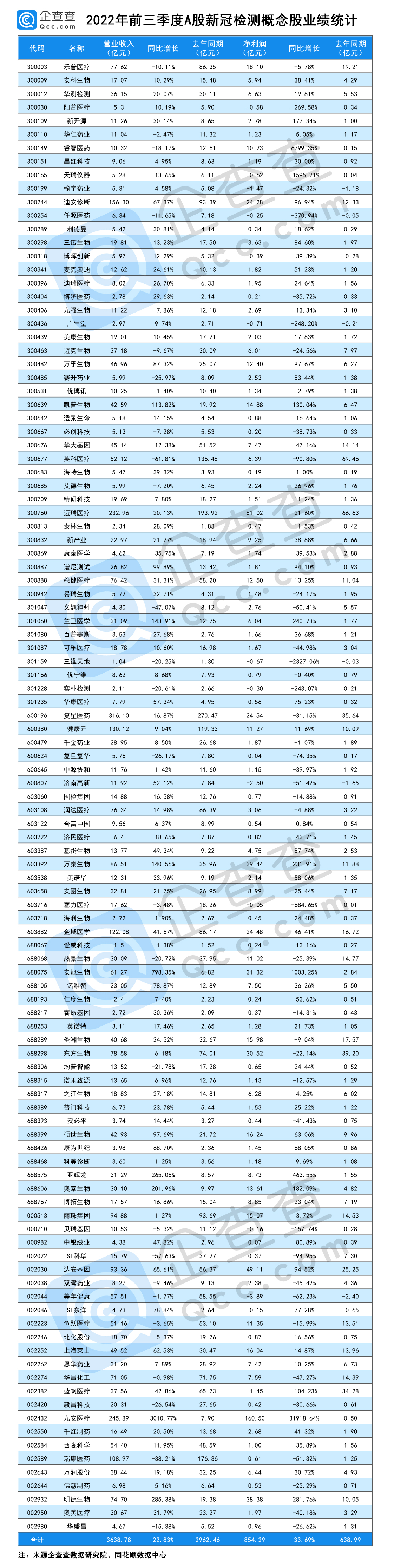 2022年前三季度,A股109家新冠检测概念公司净赚854亿。