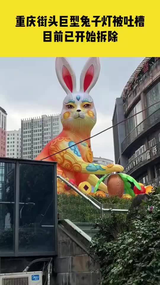 重庆街头巨型兔子灯被吐槽丑后拆除。