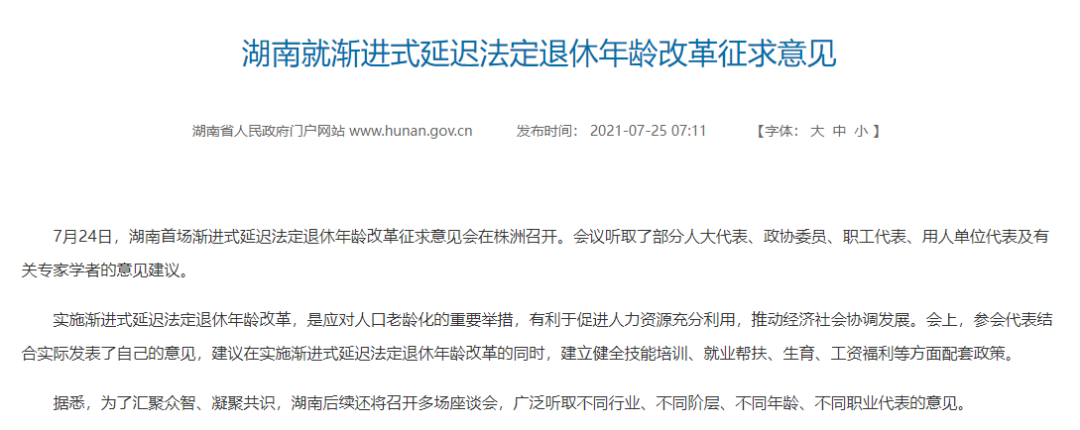 九派新闻注意到,据工人日报,早在2021年8月,北京、湖南、陕西、河北、云南、江西等地完成了渐进式延迟法定退休年龄改革征求意见工作。