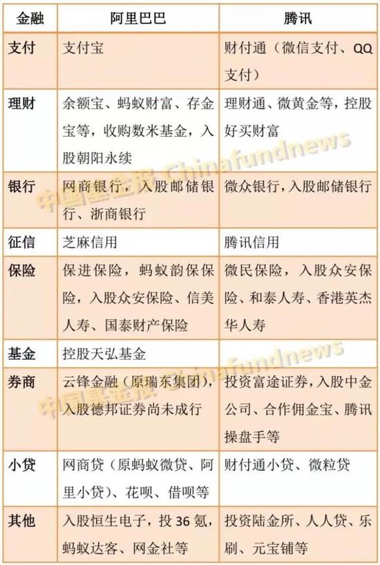 【一张图:读懂阿里和腾讯的金融帝国】 ➊腾讯已经拥有财付通、微众银行、腾讯信用、微民保险代理公司、财付通小额贷款公司等牌照,还出资认购拥有基金销售牌照的好买财富,成为中金公司第三大股东,打造腾讯FiT,包括理财通、微证券、微黄金等产品;➋ 阿里则拥有支付宝、网商银行、芝麻信用、保进保险、阿里小贷等牌照,打造了余额宝,出资成为天弘基金控股股东,曾宣布入股德邦证券,还有蚂蚁财富、花呗、借呗、存金宝等产品…如图