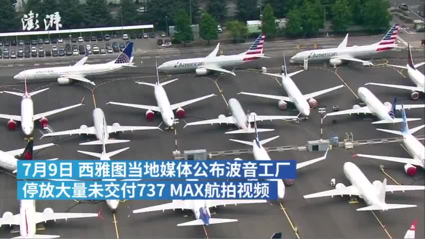 航拍波音工厂:停车场放满737MAX。7月9日,西雅图当地媒体公布波音工厂停放大量未交付737 MAX航拍视频,航拍显示该工厂至少停放了47架,由于空间有限,其中6架占用了员工停车场。(via 澎湃视频)