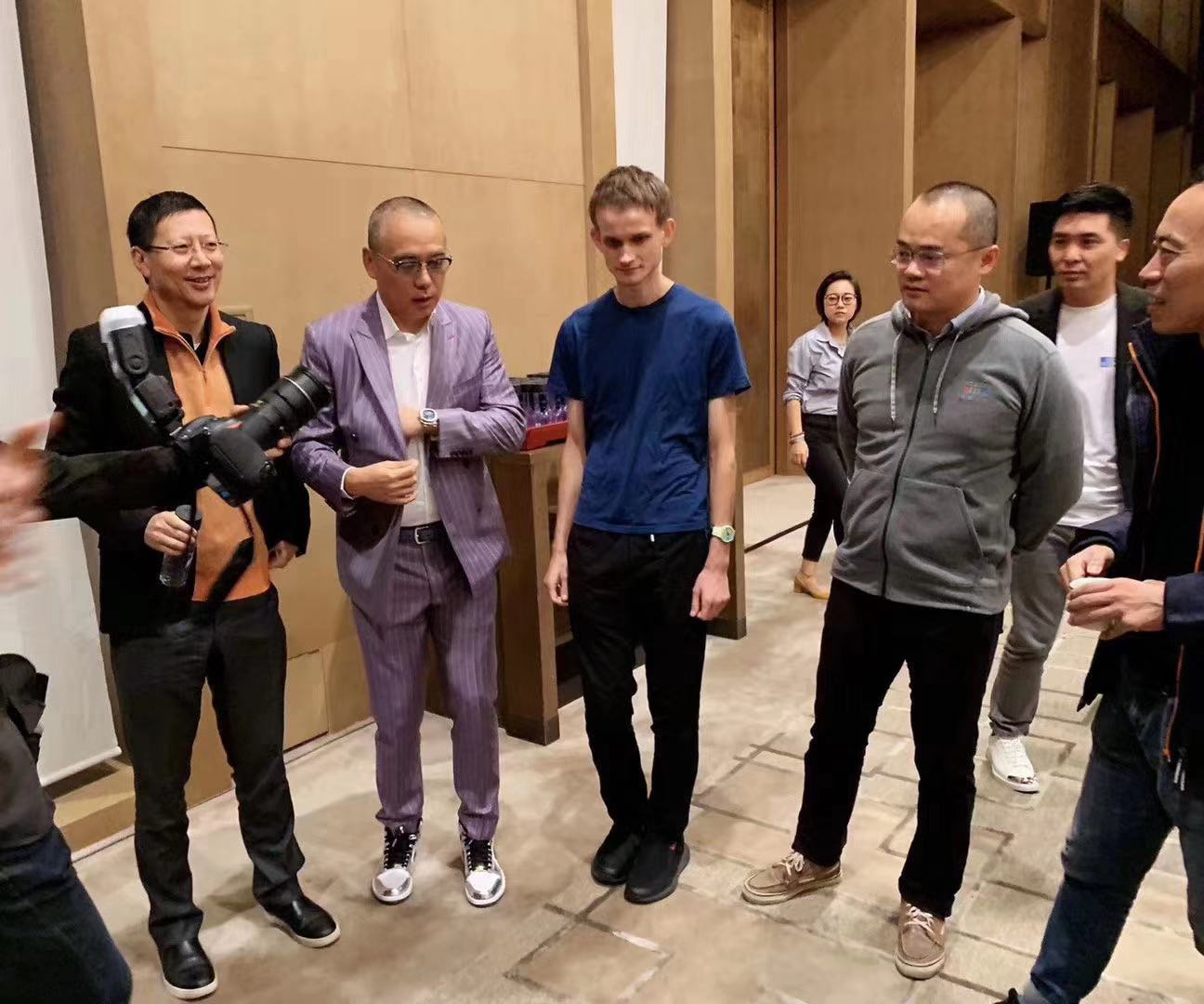 红杉沈南鹏,策源冯波,美团王兴和加密数字货币以太坊(ETH)创始人V神同框。