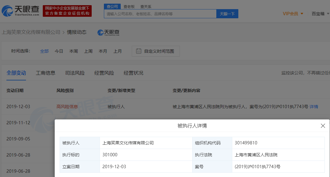 吐槽大会出品方笑果文化被列为被执行人,李诞王思聪等在股东之列。