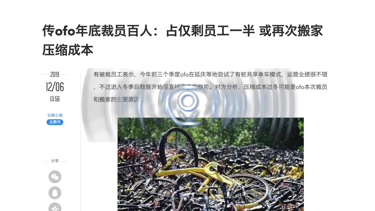 ofo年底或裁员百人,压缩成本过冬?