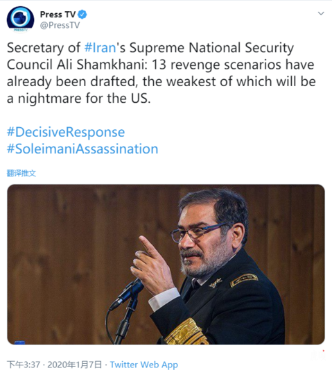 伊朗“Press TV”电视台报道,一名高级安全官员称,最高国家安全委员会正在评估13种对美国的报复手段,任何一种手段得以实施,都会对美国带来历史性梦魇。