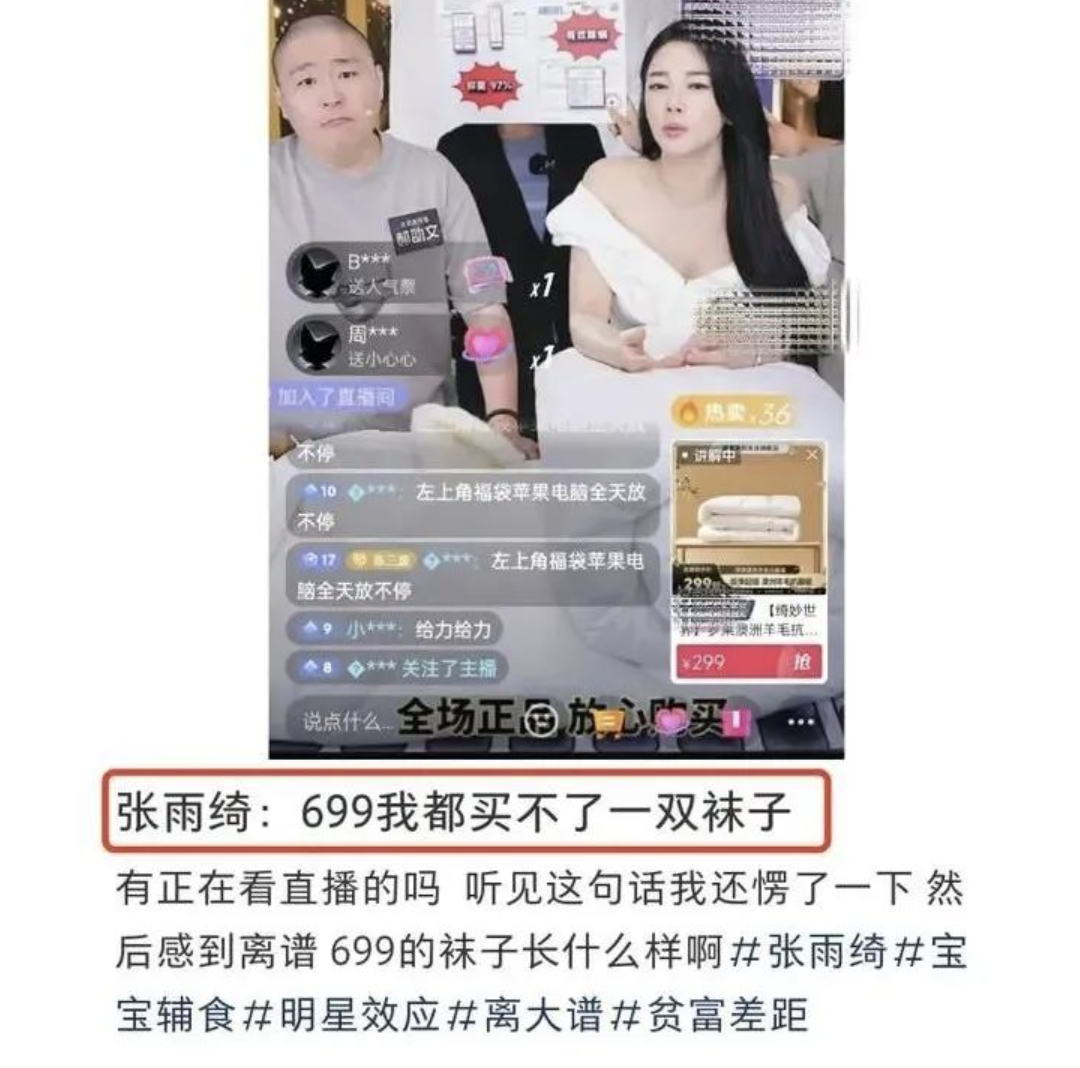 “699元我都买不了个袜子”,直播带货翻车,张雨绮被骂上热搜,本人道歉了。
