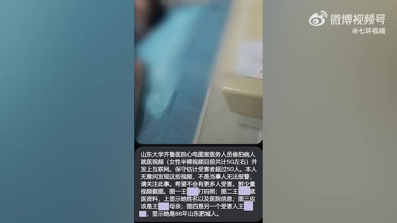 有博主发文称,山东大学齐鲁医院心电图室医务人员偷拍女性赤身就诊视频并上传网络。这些女性无遮蔽就诊视频共计5G大小,拍摄于2022年,流传于某APP中。据悉,该受害者中有未成年人。澎湃新闻查询发现,2022年10月,有网友在社交平台上反映此事。6月14日,该院回应,事发去年,“已经犯法了,公安机关很快就逮捕了,涉事人员已获刑”。(via 七环视频)