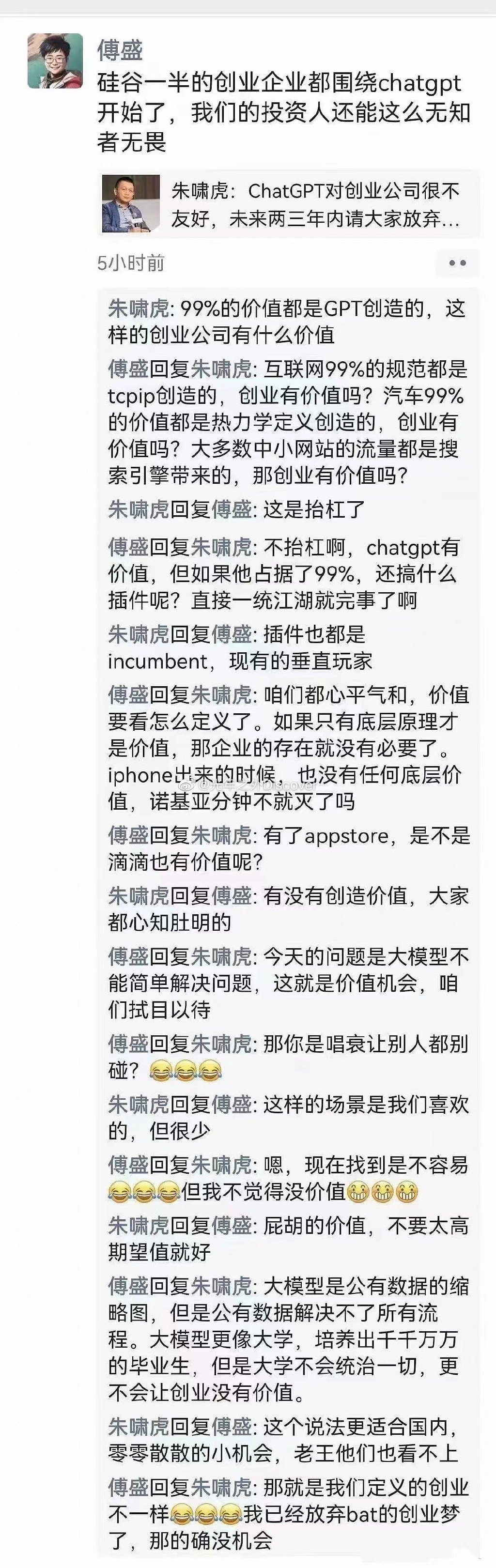 朱啸虎:ChatGpt对创业公司很不友好;傅盛怒怼。