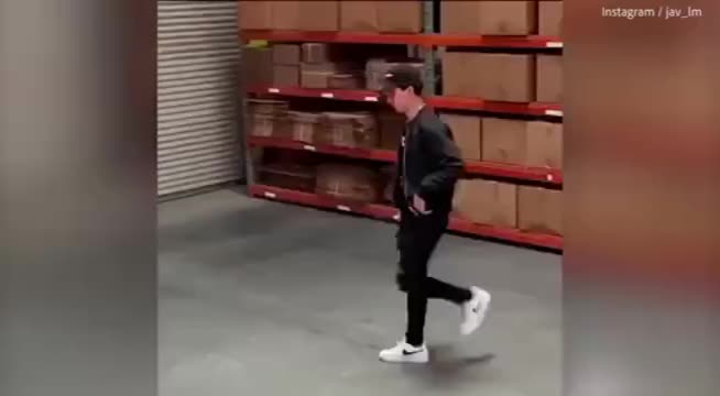 美舞蹈演员仓库里跳“月球漫步”,动作似行云流水。