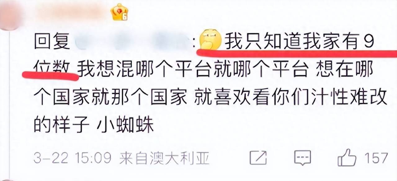 今年3月,IP地址显示为澳大利亚的网友“北极鲶鱼”在网上发文称,目前其家中存款超过9位数,且爷爷曾担任深圳市交通运输局局长。