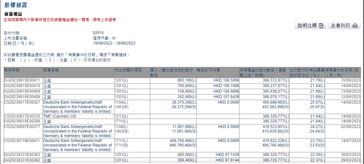 据联交所股权披露,美团首席执行官兼理想汽车非执行董事王兴,上周连续4天减持理想汽车。王兴在9月12日至15日期间,累计减持了194.79万股,平均作价介乎约157.84~160.51港元,合共套现约3.11亿港元。