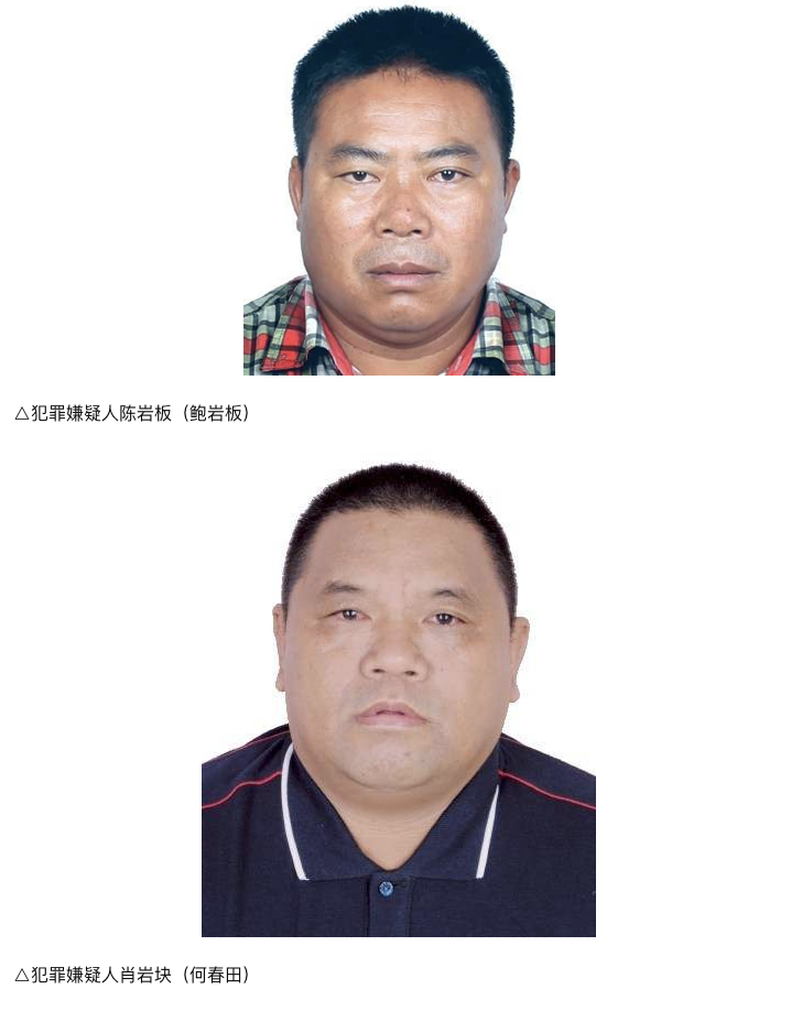 现已查明,陈岩板、肖岩块犯罪事实清楚、证据确凿充分,浙江省杭州市公安局、云南省昆明市公安局决定对其进行公开悬赏通缉。公安机关敦促犯罪嫌疑人陈岩板、肖岩块认清形势,悬崖勒马,主动投案自首,争取宽大处理。同时,希望社会各界和广大人民群众积极举报,协助抓捕犯罪嫌疑人。对提供有效线索和协助抓捕的有功人员,公安机关将给予10万至50万元人民币奖励。