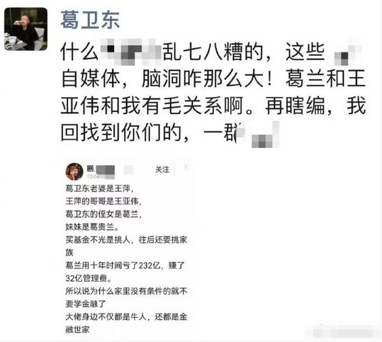 私募大佬葛卫东怒骂谣言:什么乱七八糟的。