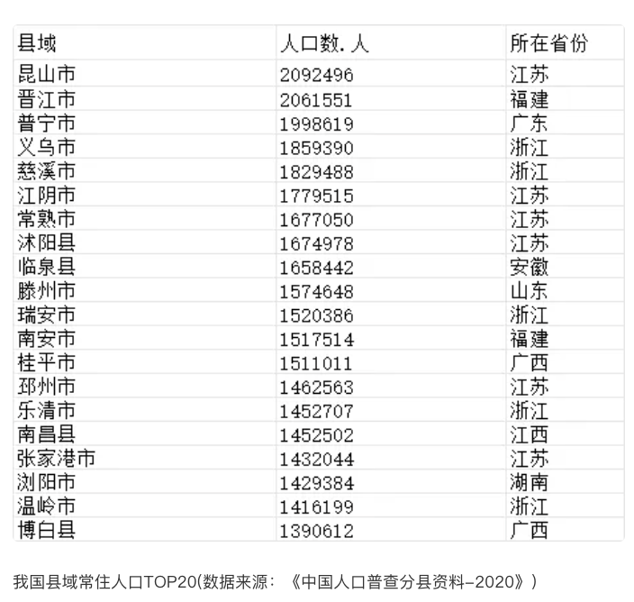 中国县域常住人口排行榜:2县超200万,546县低于20万。