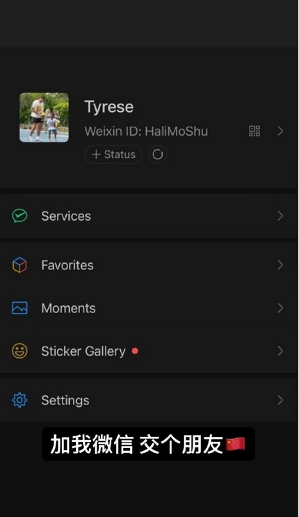 据北青体育,哈利伯顿今天晒出了自己的微信个人界面:“加我微信,交个朋友🇨🇳”