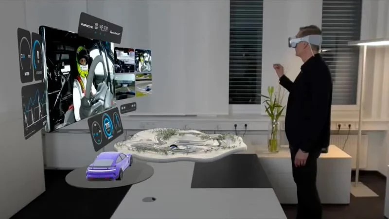 Taycan Turbo GT是保时捷有史以来动力最强的量产车型。在发布会视频中,保时捷展示了专为其Vision Pro头显开发的赛车工程师驾驶舱应用。该应用可以让观众以第一人称视角观看跑赛道圈速,同时伴有关键数据统计和3D赛道地图。