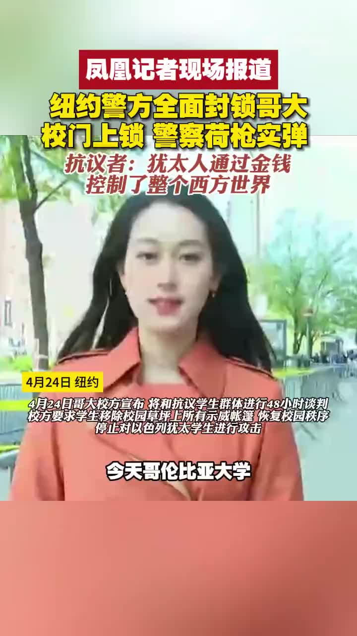据凤凰网,纽约警方全面封锁哥大,警察荷枪实弹。抗议者:犹太人通过金钱控制了整个西方世界。