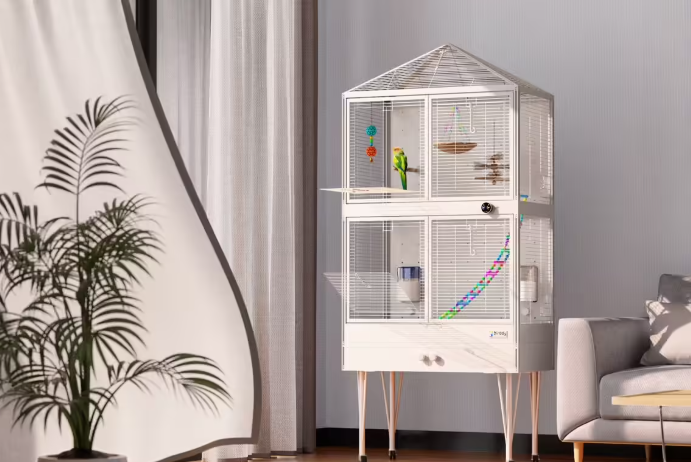 智能养鸟是种什么体验?最近,Reli公司推出了“全球首款智能鸟笼”Reli Birddy,旨在“提高人类和鸟类的生存质量”,售价599美元。这款鸟笼尺寸约82x46x180厘米,拥有五种可调节的灯光模式,还具备自清洁系统和紫外线消毒功能。它还配备了智能喂食器和水分配器,全天候提供新鲜水源,并搭配APP。尽管这款鸟笼看起来“省力又省时”,但仍有网友指出:“这不是钱多烧得慌吗。”你怎么看?